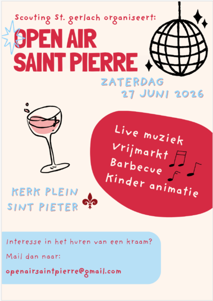 Scouting Sint Gerlach organiseert dit jaar weer “Open Air Saint Pierre” (eerder genoemd de Kermis van Sint Pieter) op zaterdag 27 juni a.s.